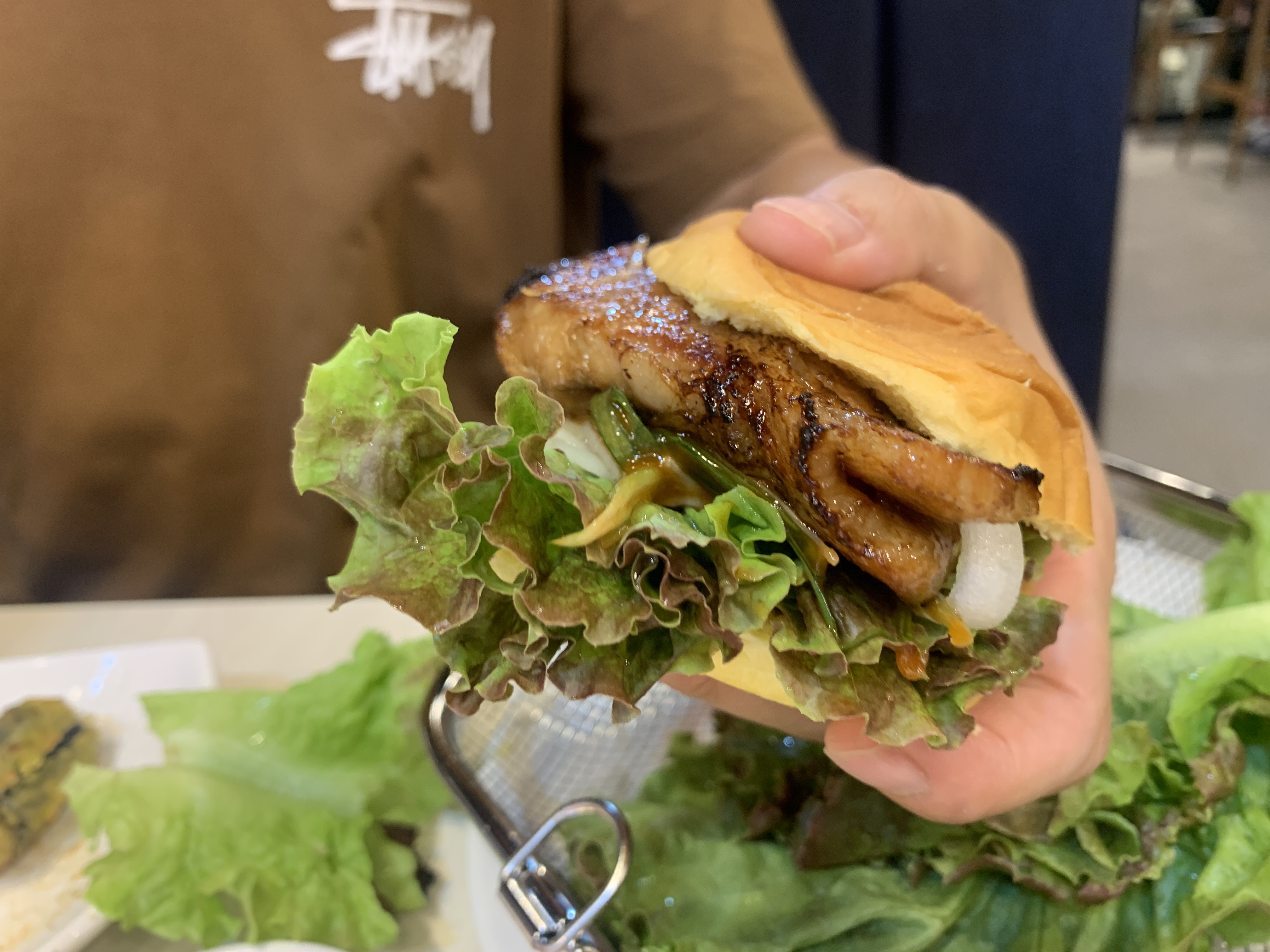 잡채, 떡볶이, 모둠튀김, 청포묵, 등 여러 가지가 있고 나중에 구운 갈비로 갈비 버거를 해 먹을 수 있도록