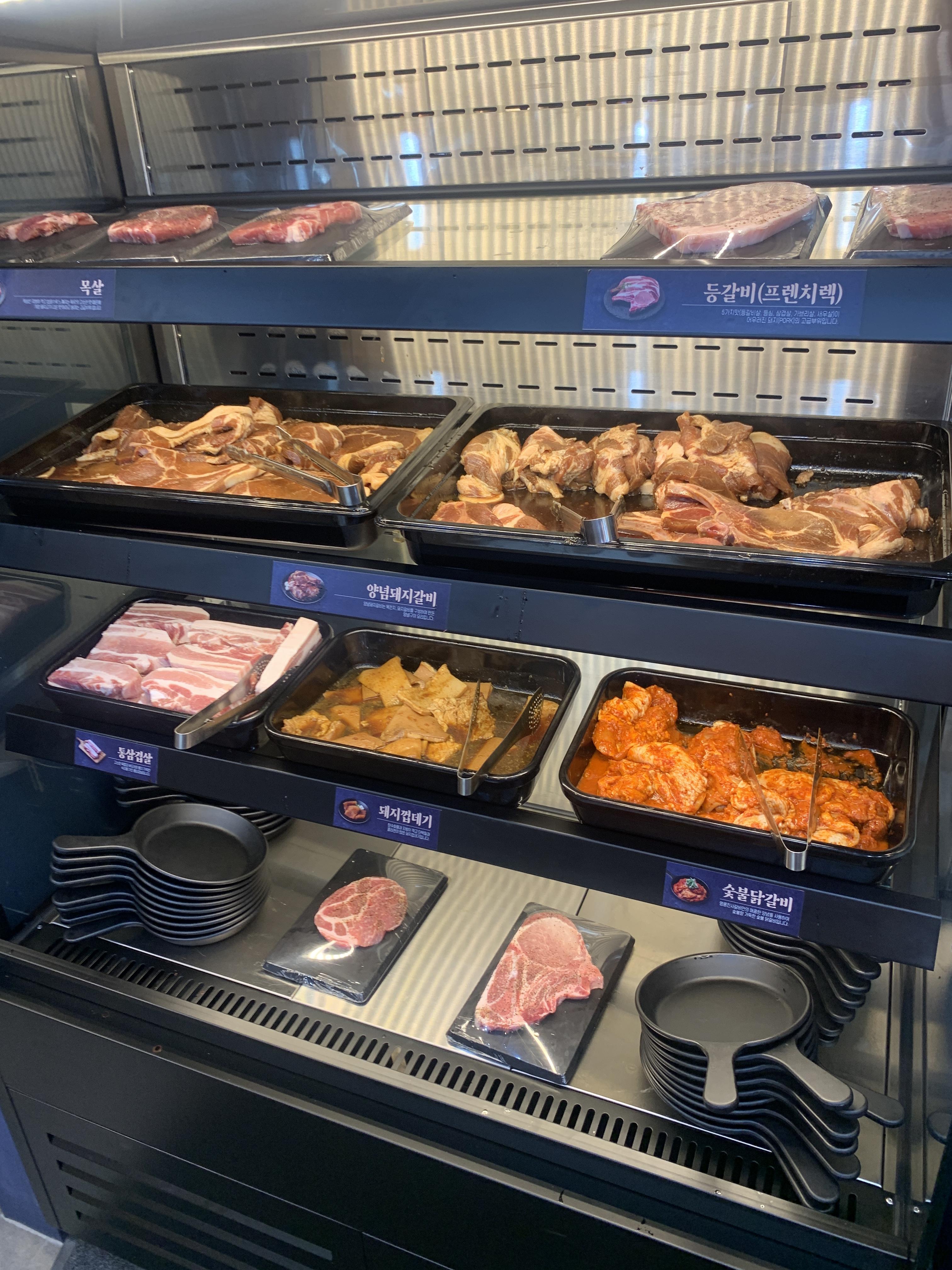 삼겹살, 목살, 갈비, 닭갈비, 등등 여러 종류가 있었고 목살은 이번에 새로 출시가 됐다고 하네요